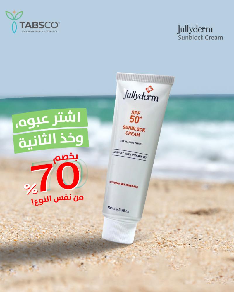 احصل الآن على جوليديرم كريم الوقاية من الشمس واستفد من تخفيض 70% على العبوة الثانية عند شرائك عبوتين! لا تفوت الفرصة واحصل على حماية مضاعفة بسعر أقل
