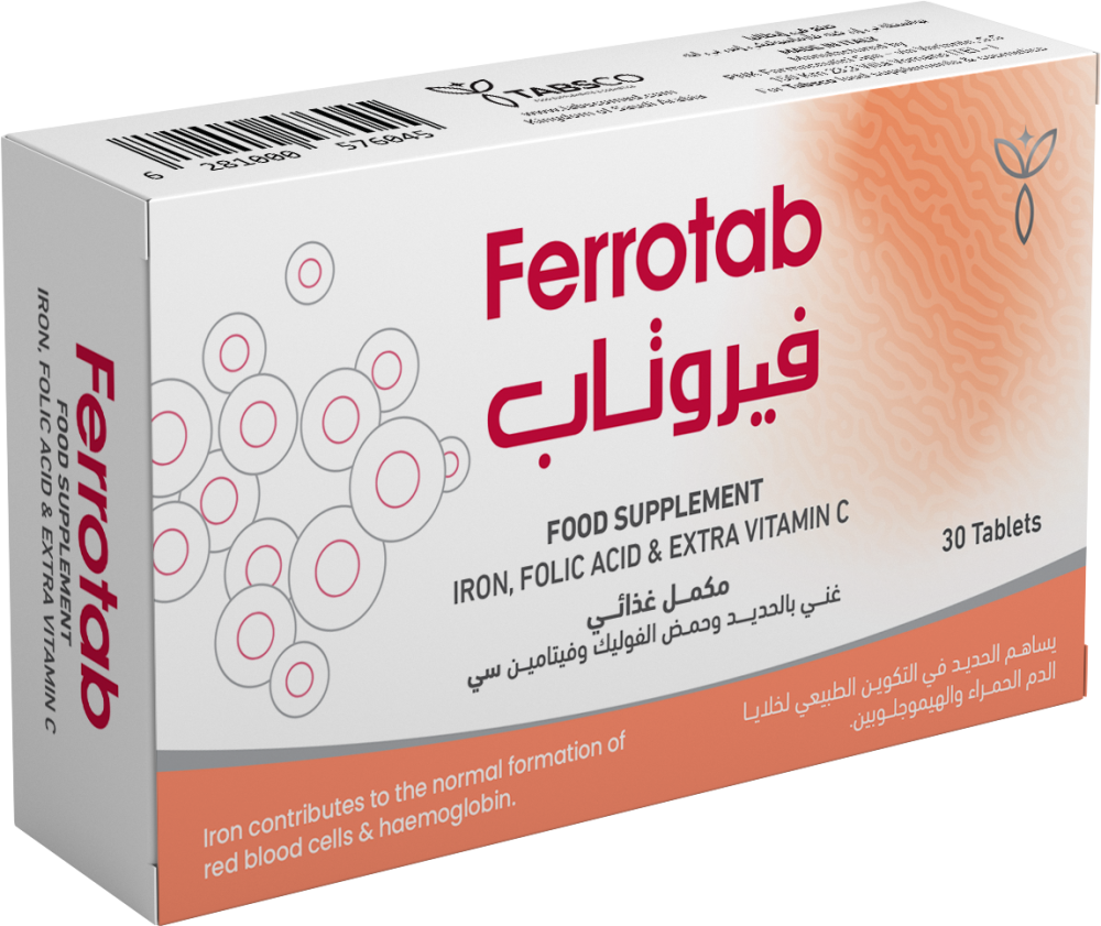 فيروتاب مكمل غذائي غني ب عن بثلاث عناصر غذائية أساسية (حديد وحمض الفوليك وفيتامين سي) يستخدم للوقاية من نقص الحديد أو المساعدة في علاجه بسبب سوء التغذية وبعض الأمراض وأثناء الحمل.